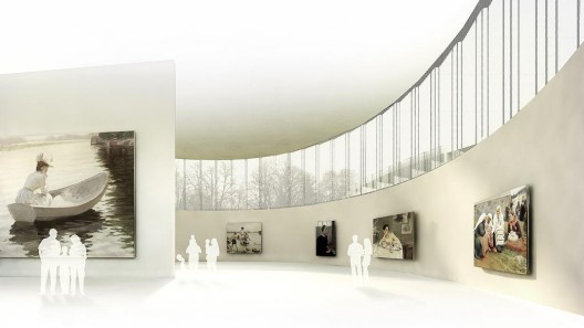 La firma española Bach Arquitectes presenta esta propuesta para el museo Gösta en Finlandia planteando un edificio que es en si mismo un puente. A partir de este hecho, se propone que una parte del edificio tenga forma de anillo, dispuesto delicadamente sobre el terreno y ligeramente levantado para apoyarse sobre Taavetinsaari, pasando sobre el río sin tocarlo; la propuesta respeta con delicadeza su entorno y naturaleza. Más imágenes a continuación.